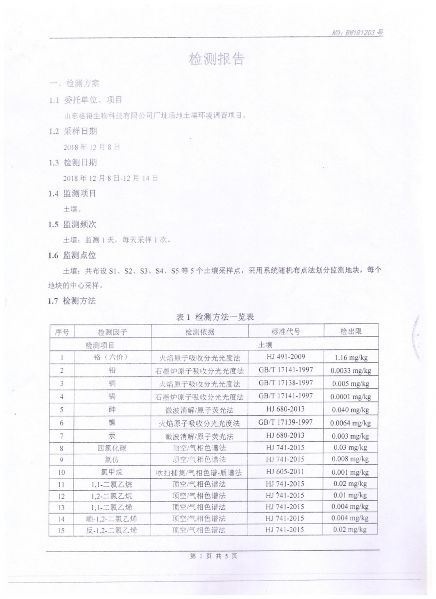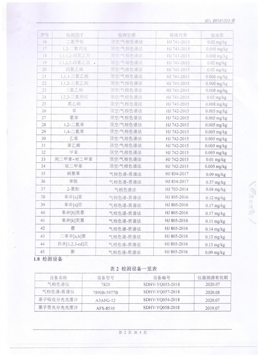 2018年土壤檢測報(bào)告