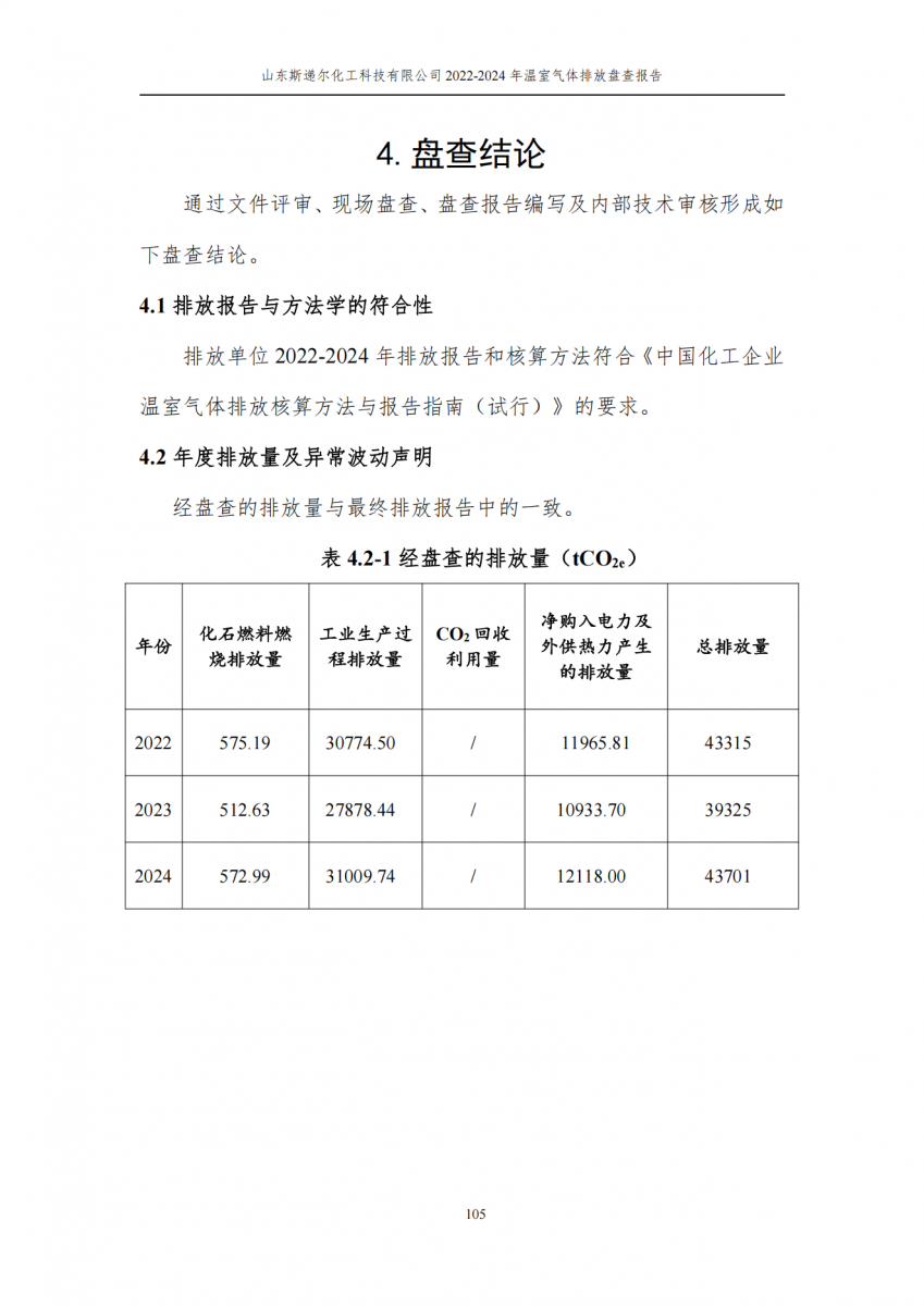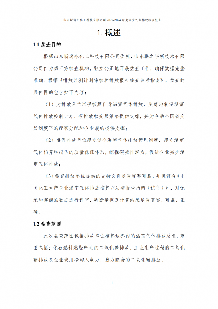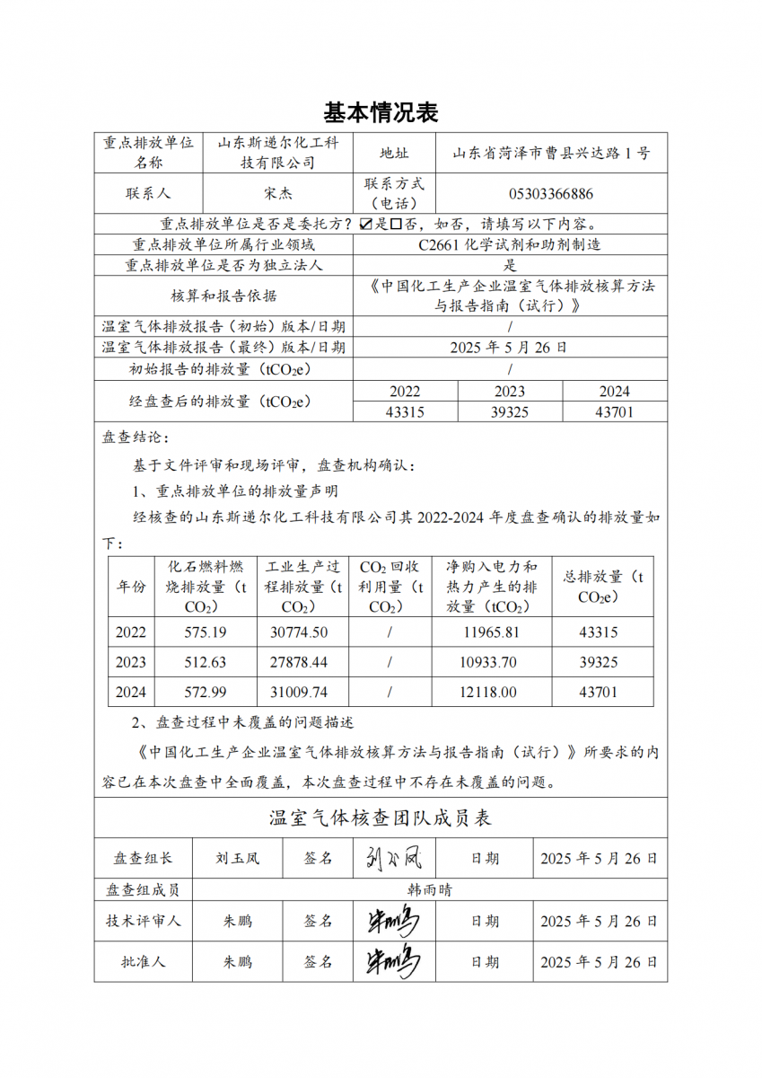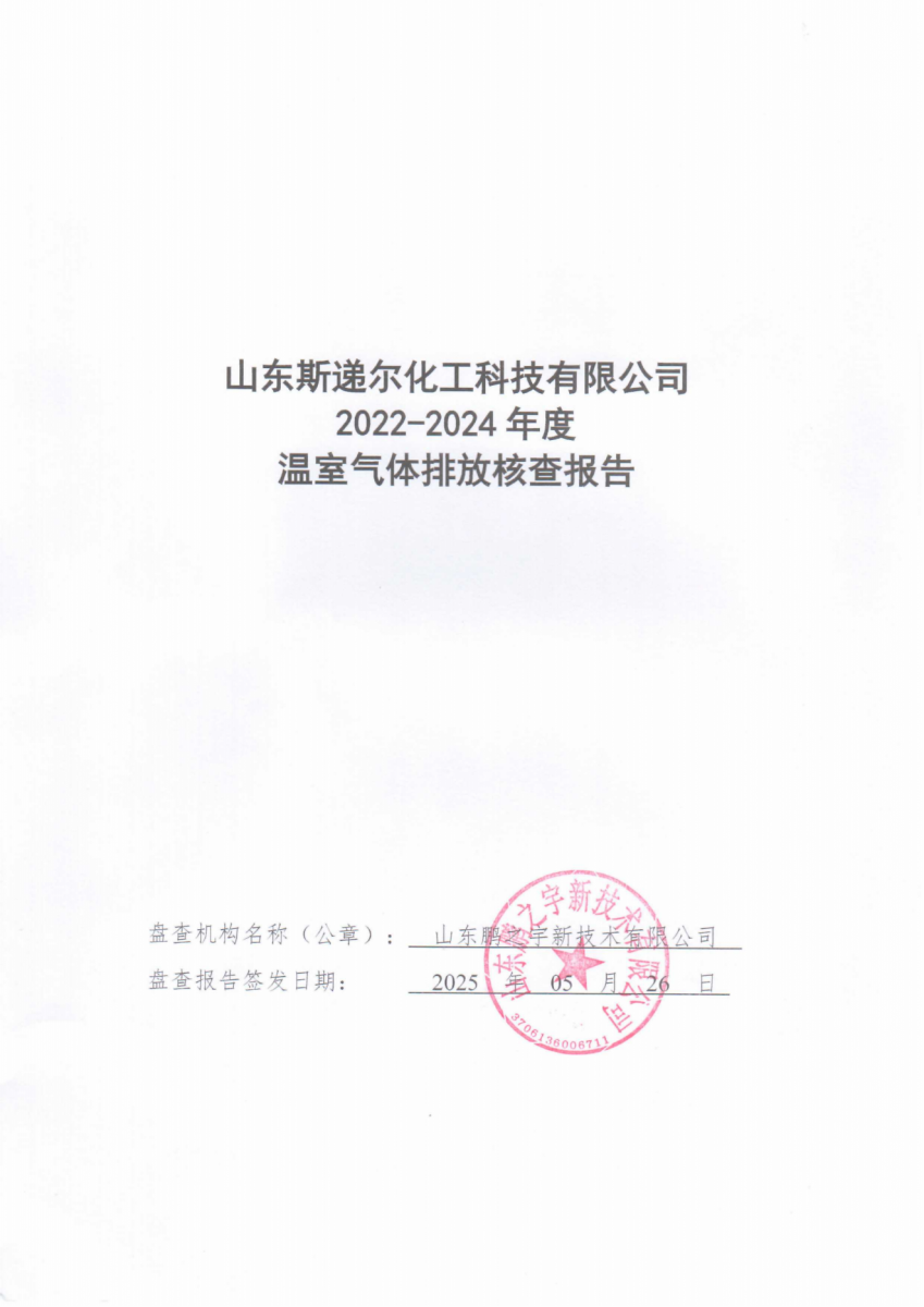 山東斯遞爾化工科技有限公司2022-2024年度溫室氣體排放核查報告